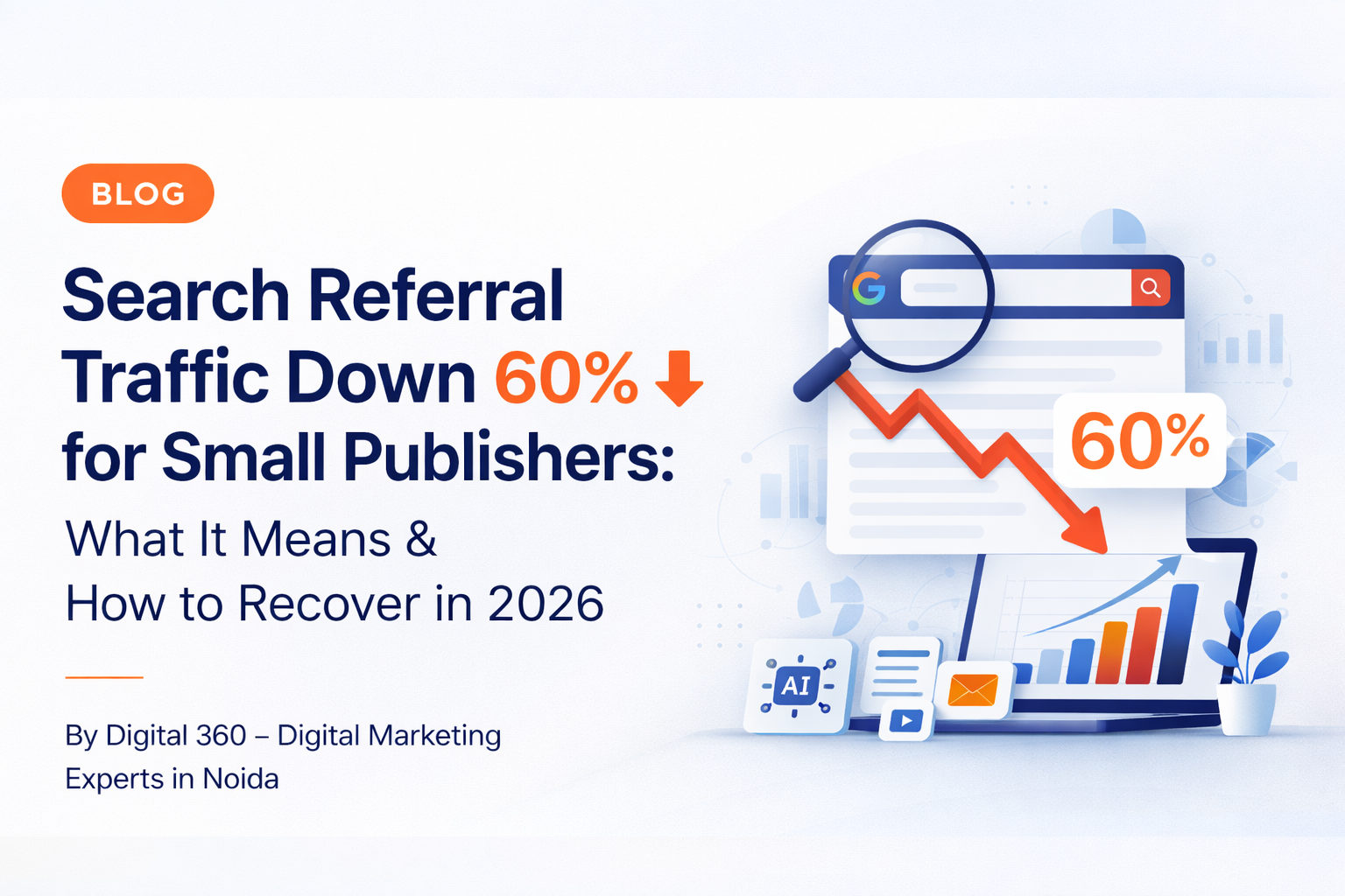 Search Referral Traffic Down 60% for Small Publishers: What It Means & How to Recover in 2026 By Digital 360 – Digital Marketing Experts in Noida 1. Introduction – The Big Shift in Search Traffic Over the past two years, the digital publishing landscape has undergone a dramatic transformation. What was once considered a reliable […]